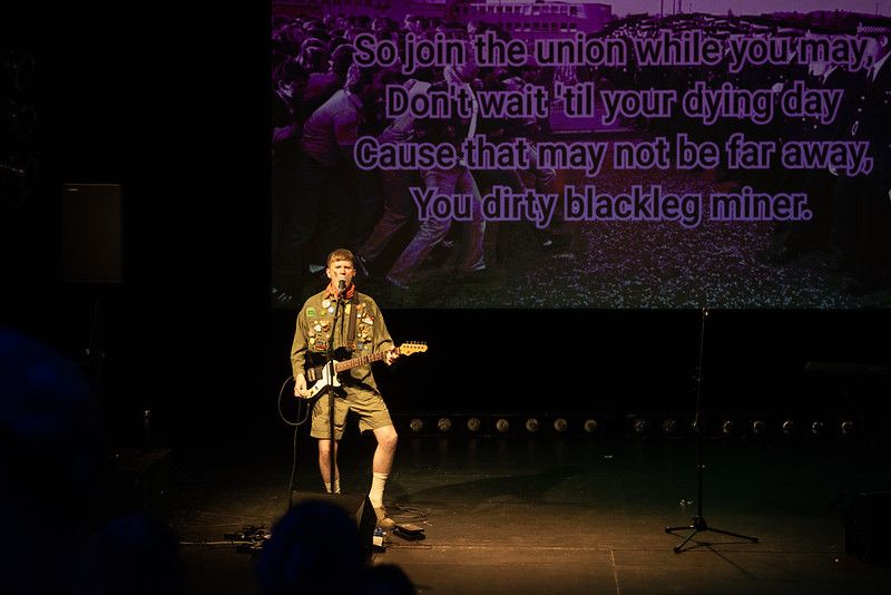 Nun übernimmt Calum Perrin, erzählt von einem einjährigen Streik der Bergmänner während der Thatcher-Ära in seiner Heimatstadt in Nordostengland und singt dazu den Protestsong „The Blackleg Miner“. Wir müssen uns solidarisieren, dann werden wir mächtig, schließen wir daraus messerscharf.